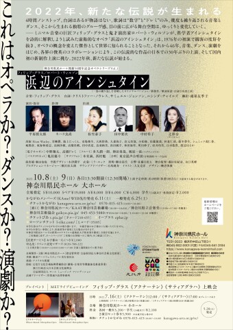 This performance is part of a series of innovative performing arts productions developed on various themes each year in the lead up to the 50th anniversary of the opening of Kanagawa Kemnin Hall in 2025. The theme for 2022 being Music + Dance, we will present for the first time in Japan a new production of the opera “Einstein on the Beach” composed by the master of minimal music Philip Glass and directed by the genius ‘theatre artist’ Robert Wilson.