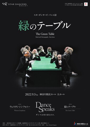 1932年にパリで初演された、クルト・ヨースの不朽の名作「緑のテーブル」。クルト・ヨースはピナ・バウシュが師と仰いだドイツ出身の振付家であり、ナチス・ドイツのゲシュタポの迫害から逃れた過去を持つ。平和会議のモチーフである緑のテーブルを囲んで、マスクを着けた黒服の男たちが議論を交わすシーンから始まる本作は、斬新かつユニークな構想・振付と2台のピアノの生演奏によって、人間の微細な感情を表現することに成功したバレエの歴史的作品。その痛烈なメッセージは、初演から90年が経った今もなお色褪せることはない。