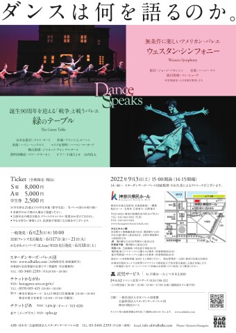 1932年のパリ国際舞踊コンクールで最優秀賞を受賞した歴史的傑作「緑のテーブル」。19世紀のアメリカ西部開拓時代を舞台にした無条件に楽しい「ウェスタン・シンフォニー」。珠玉のダブル・ビルをお楽しみください。(14:40~ スターダンサーズ・バレエ団総監督 小山久美によるプレトークがございます。)