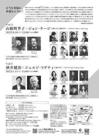 - 料金 全席指定 一般¥4,000 学生(24歳以下/枚数限定)¥2,000 セット券(Vol.3&Vol.4/枚数限定)¥7,000