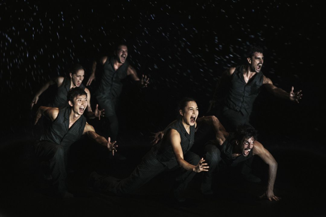 日本では初めての本格的な紹介となる、今世界から注目を集めるシャロン・エイアール&ガイ・ベハールのダンス作品。16名のダンサーがヌーディーなボディスーツに身を包み、つま先立ちでバランスをとりつつ身を寄せ合う姿が暗闇から浮かび上がる。繊細かつ強靭な肉体のアンサンブルと身体を内側から揺さぶる低音のビートによる、エネルギーがほとばしる展開にひと時も目が離せない。