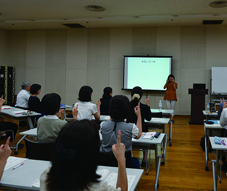 聴覚に障害のある方をいつもと変わらない笑顔でお迎えするため、「手話」を学ぶことにしました。そして 8 月に手話講座を受講。いざ始まった講座では、手話だけではなく、手話という言語そのもののこと、耳が聞こえないというのはどういうことか、 など、講師への質問がとまらないほど、学ぶことがたくさんありました。 とはいえ、私たちの手話は、お迎えするための基本的な少しの言葉だけです。