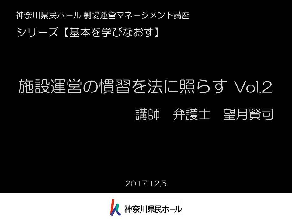 - 劇場運営マネージメント講座 シリーズ「基本を学びなおす」 第4回 施設運営の慣習を法に照らす Vol.2