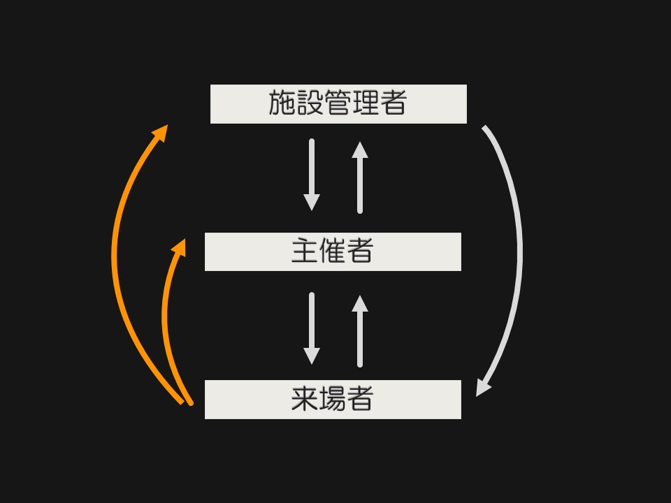 一方、貸館公演の際は、私たち施設は、主催者と施設利用の契約を行い、主催者がお客様を受入れることになります。