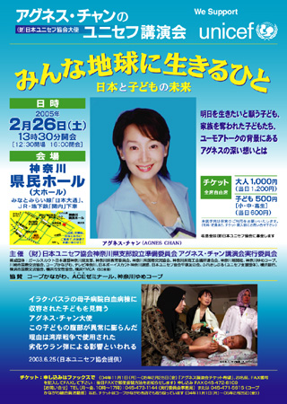 合わせ (財)日本ユニセフ協会 神奈川県支部設立準備委員会 アグネス・チャン講演会実行委員会 045-473-1144