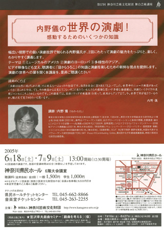 第57回舞台芸術講座 内野儀(うちのただし)の 世界の演劇!