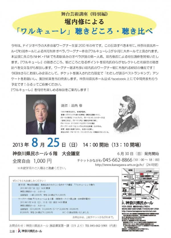堀内 修(音楽評論家)堀内修(ほりうち おさむ) 1949年東京生まれ。音楽評論家。著書に『クラシック不滅の名演奏』(講談社選書メチエ)、『オペラに乾杯』(ベストブック)、『オペラと40人のスターたち』(音楽之友社)、『オペラ入門』(講談社学術文庫)、『モーツァルト オペラのすべて』『オペラの名盤』『ワーグナーのすべて』(いずれも平凡社新書)などがある。新聞・雑誌に執筆するほか、放送にも出演し、現在はNHK・FM「オペラ・ファンタスティカ」の解説を行なっている。チケット