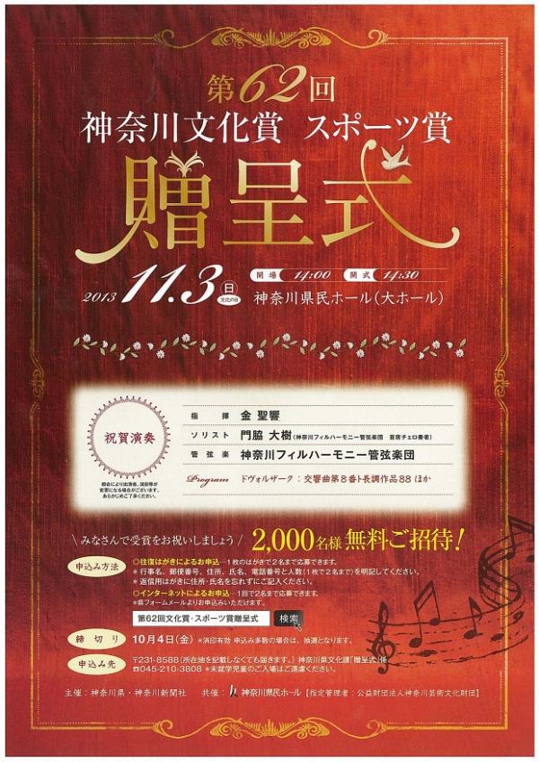 申 込 先:〒231-8588(住所を記載しなくても届きます。)神奈川県文化課「贈呈式」係