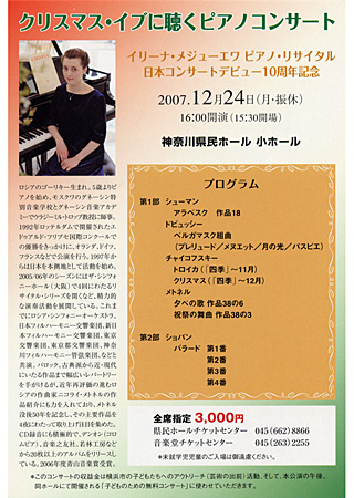 ~イリーナ・メジューエワ ピアノリサイタル 日本コンサート・デビュー10周年記念~
