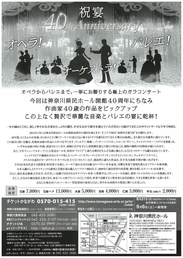 一年の締めくくりに、楽しく華やかな音楽をたっぷりと聴き、幸せな気分で新年を迎えていただきたいと続けてきたこのガラコンサートも今年で9回目を迎えます。今回は神奈川県民ホール開館40周年にちなみ、作曲家40歳の作品をピックアップします。この上なく贅沢で華麗な音楽とバレエの宴に乾杯!