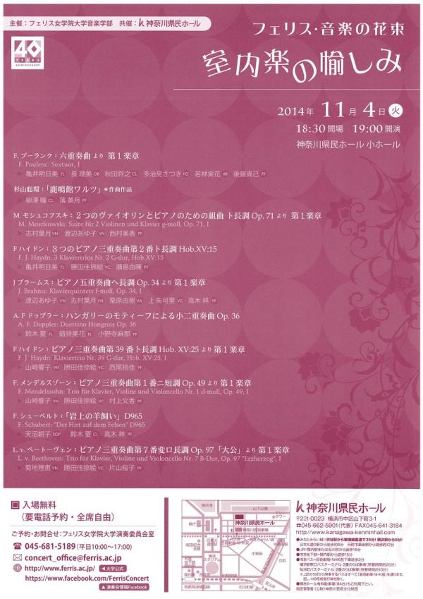 合わせ フェリス女学院大学 音楽学部演奏委員会室 045-681-5189(平日10:00-17:00)