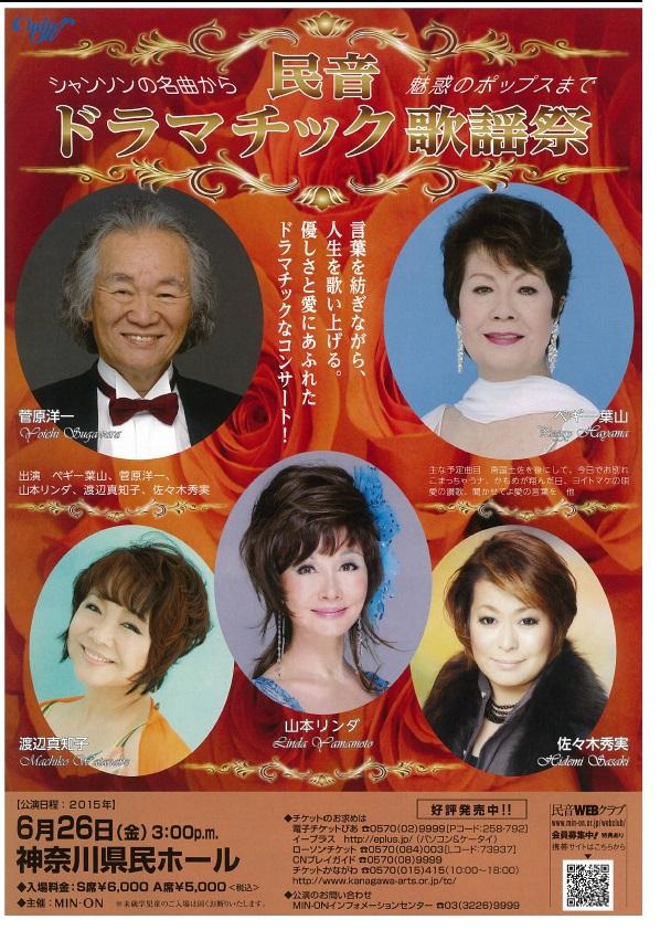 戦後日本の歌謡界をけん引してきた大御所、菅原洋一やペギー葉山をはじめ、シャンソンでも定評のある山本リンダパワフルな歌唱力が人気の渡辺真知子、中性的な魅力で注目のシャンソン歌手・佐々木秀実。民音ならではの豪華な出演者が熱唱し、名曲の数々をお楽しみいただく、歌の力を実感する感動のステージです。素晴らしい歌の数々をたっぷりとご堪能下さい。