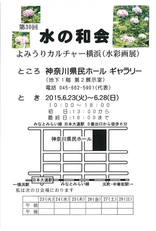 よみうりカルチャー横浜の水曜水彩画教室で16人が静物、人物、風景等を1人2~3点展示します。