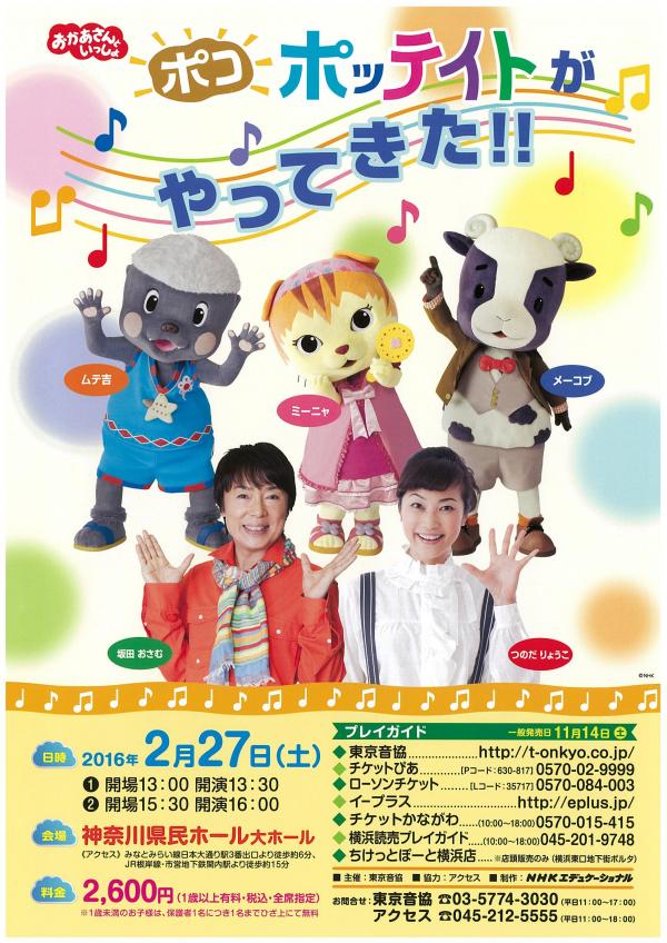 「おかあさんといっしょ」で人気のムテ吉・ミーニャ・メーコブと“坂田おさむさん・つのだりょうこさん”が繰り広げる歌や踊りのコンサート。