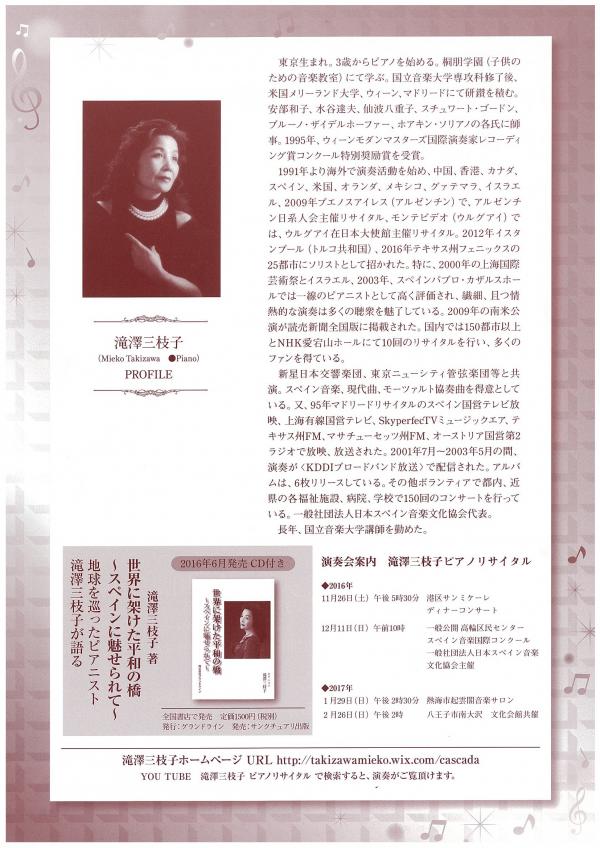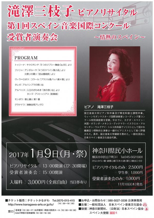 滝澤三枝子ピアノリサイタル & 第1回スペイン音楽国際コンクール受賞者演奏会