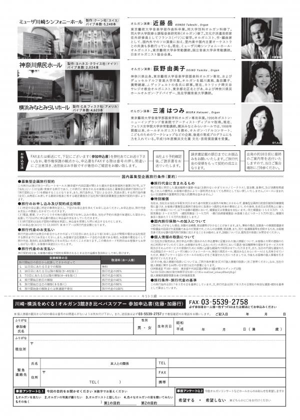 神奈川県を代表するタイプの違う3つのパイプオルガンの響きを存分に体感するツアー。 ミニコンサートでは全館共通でJ.S.バッハ作曲「 小フーガ 」が演奏されます。国内外で活躍するオルガニストの演奏とインストラクションもお楽しみください。
