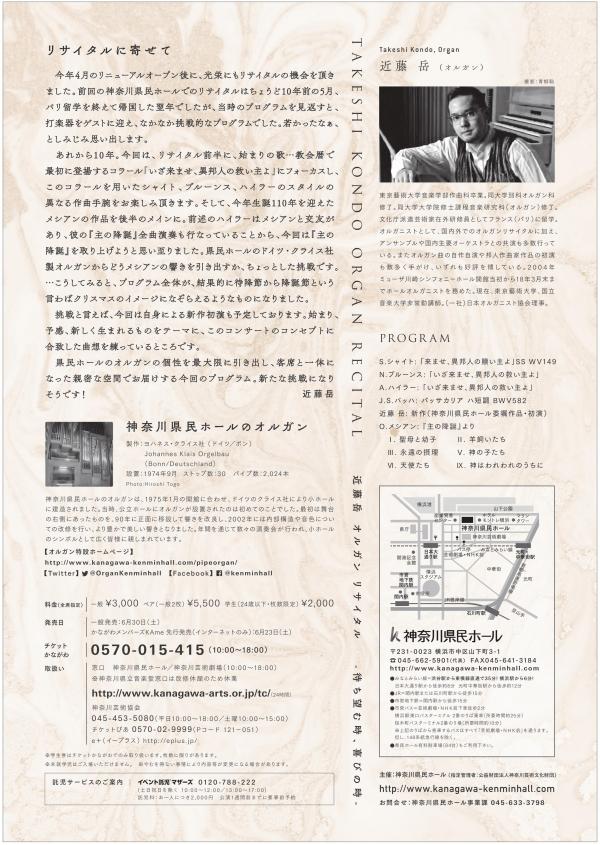 あれから10年。今回は、リサイタル前半に、始まりの歌…教会暦で一番最初に登場するコラール「いざ来ませ、異邦人の救い主よ」にフォーカスし、このコラールを用いたシャイト、ブルーンス、ハイラーのスタイルの異なる作曲手腕をお楽しみ頂きます。そして、今年生誕110年を迎えたメシアンの作品を後半のメインに。前述のハイラーはメシアンと交友があり、彼の『主の降誕』全曲演奏も行なっていることから、今回は『主の降誕』を取り上げようと思い至りました。県民ホールのドイツ・クライス社製オルガンからどうメシアンの響きを引き出すか、ちょっとした挑戦です。…こうしてみると、プログラム全体が、結果的に待降節から降誕節という言わばクリスマスのイメージになぞらえるようなものになりました。
