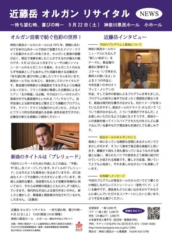 県民ホールのオルガンの個性を最大限に引き出し、客席と一体になった親密な空間でお届けする今回のプログラム。新たな挑戦になりそうです!