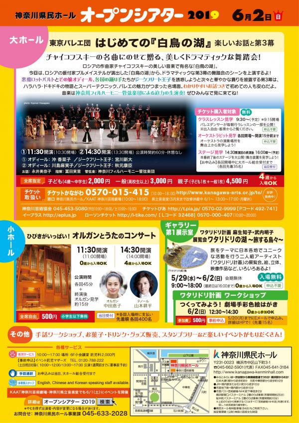 劇場が街に開かれ、素敵な芸術に出会えるオープンシアター。大ホールでは、クラシック・バレエの代名詞ともいえる「白鳥の湖」の中から、とくに華やかな第3幕を上演します。東京バレエ団によるドラマティックなブルメイステル振付版を、神奈川フィルハーモニー管弦楽団のオーケストラ生演奏と、はじめての鑑賞でも楽しみやすいお話付きでお届けする約1時間のスペシャル版!4歳のお子様からご入場いただけます。