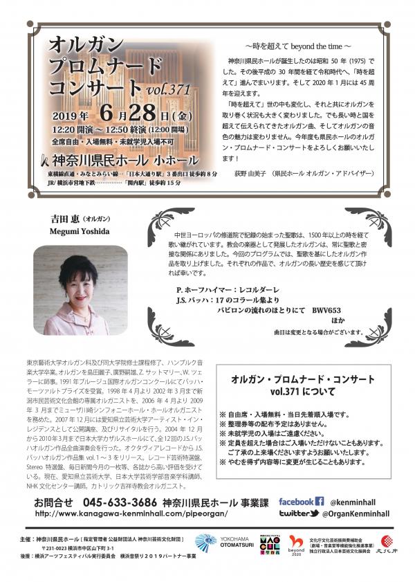 吉田 恵(オルガン) Megumi Yoshida, OrganP.ホーフハイマー:レコルダーレ M.ヴェックマン:第2旋法によるマニフィカト J.S.バッハ:17のコラール集より「バビロンの流れのほとりにて」BWV653 A.ハイラー:サルヴェ・レジーナによる幻想曲吉田 恵(オルガン) Megumi Yoshida, Organ 東京藝術大学オルガン科及び同大学院修士課程修了、ハンブルク音楽大学卒業。オルガンを島田麗子、廣野嗣雄、Z.サットマリー、W.ツェラーに師事。1991年ブルージュ国際オルガンコンクールにてバッハ・モーツァルトプライズを受賞。1998年4月より2002年3月まで新潟市民芸術文化会館の専属オルガニストを、2006年4月より2009年3月までミューザ川崎シンフォニーホール・ホールオルガニストを務めた。2007年12月には愛知県立芸術大学アーティスト・イン・レジデンスとして公開講座、及びリサイタルを行う。2004年12月から2010年3月まで日本大学カザルスホールにて、全12回のJ.S.バッハオルガン作品全曲演奏会を行った。オクタヴィアレコードからJ.S.バッハオルガン作品集vol.1~3をリリース。レコード芸術特選盤、Stereo特選盤、毎日新聞今月の一枚等、各誌から高い評価を受けている。現在、愛知県立芸術大学、日本大学芸術学部音楽学科講師、NHK文化センター講師。カトリック吉祥寺教会オルガニスト。チケット