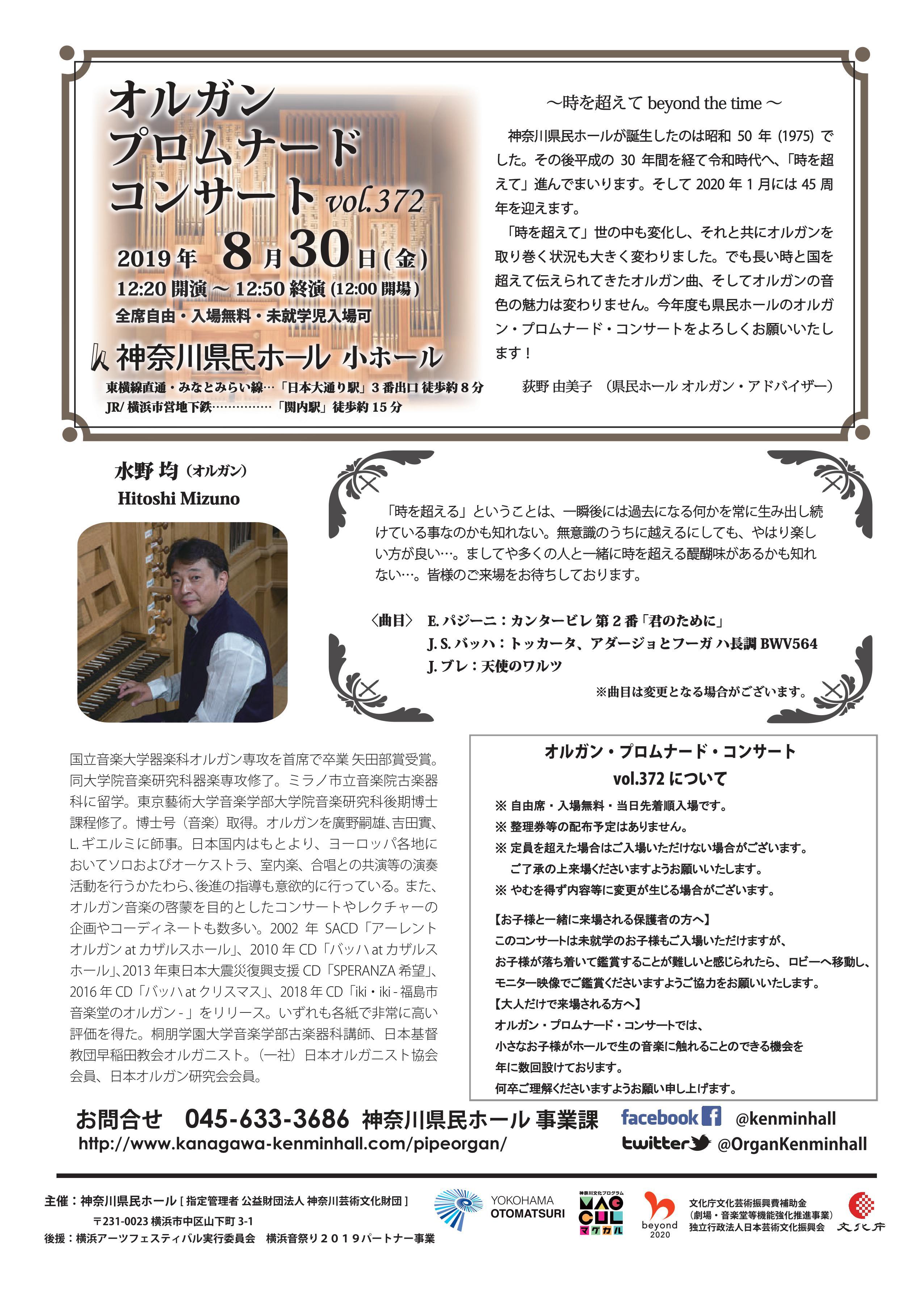 水野 均(オルガン) Hitoshi Mizuno, OrganE. パジーニ:カンタービレ 第2番 「君のために」 J. S. バッハ:トッカータ、アダージョとフーガ ハ長調 BWV564 J. ブレ:天使のワルツ水野 均(オルガン) Hitoshi Mizuno, Organ 国立音楽大学器楽科オルガン専攻を首席で卒業 矢田部賞受賞。同大学院音楽研究科器楽専攻修了。ミラノ市立音楽院古楽器科に留学。東京藝術大学音楽学部大学院音楽研究科後期博士課程修了。博士号(音楽)取得。オルガンを廣野嗣雄、吉田實、L. ギエルミに師事。日本国内はもとより、ヨーロッパ各地においてソロおよびオーケストラ、室内楽、合唱との共演等の演奏活動を行うかたわら、後進の指導も意欲的に行っている。また、オルガン音楽の啓蒙を目的としたコンサートやレクチャーの企画やコーディネートも数多い。2002年SACD「アーレントオルガン at カザルスホール」、2010年CD「バッハ at カザルスホール」、2013年東日本大震災復興支援CD「SPERANZA 希望」、2016年CD「バッハ at クリスマス」、2018年CD「iki・iki - 福島市音楽堂のオルガン - 」をリリース。いずれも各紙で非常に高い評価を得た。桐朋学園大学音楽学部古楽器科講師、日本基督教団早稲田教会オルガニスト。日本オルガニスト協会会員、日本オルガン研究会会員。チケット