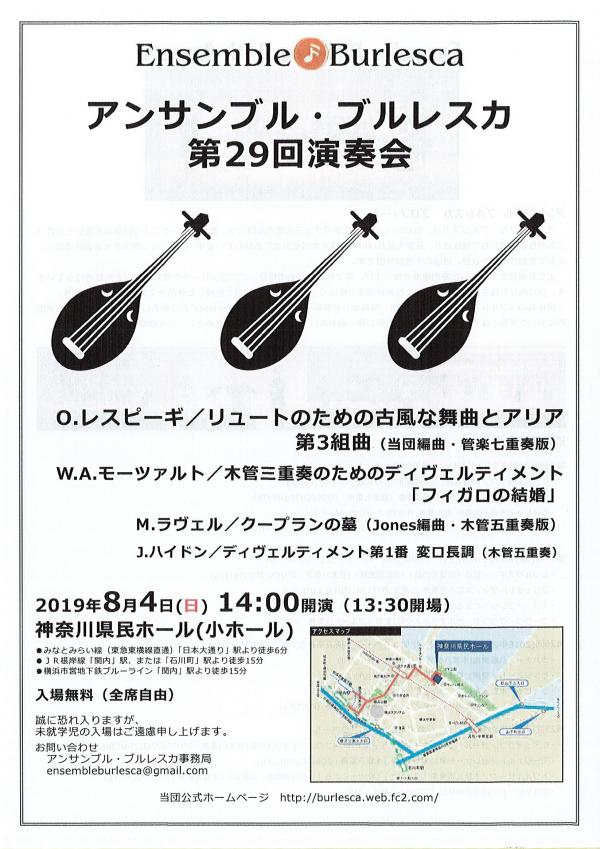 合わせ アンサンブル・ブルレスカ事務局 070-5453-7756(関根)