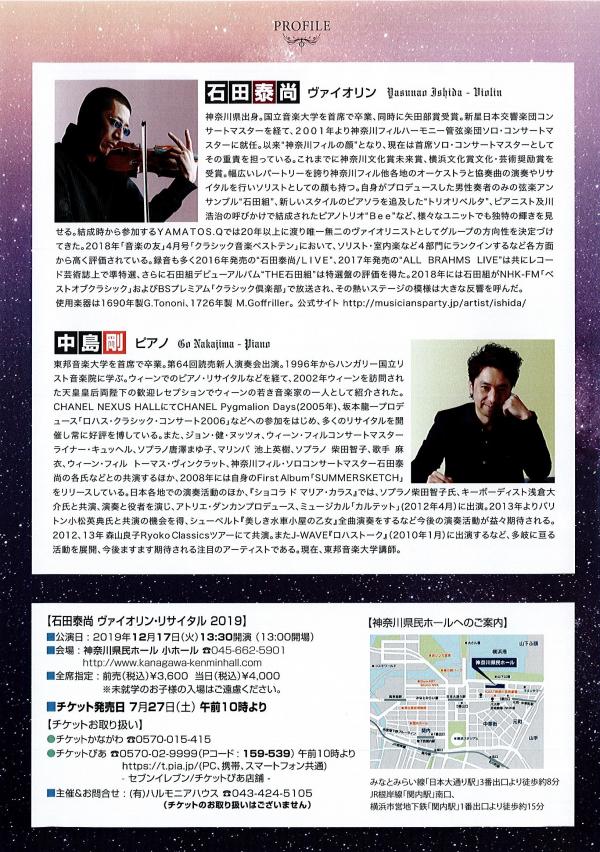 石田泰尚 ヴァイオリン・リサイタル 2019