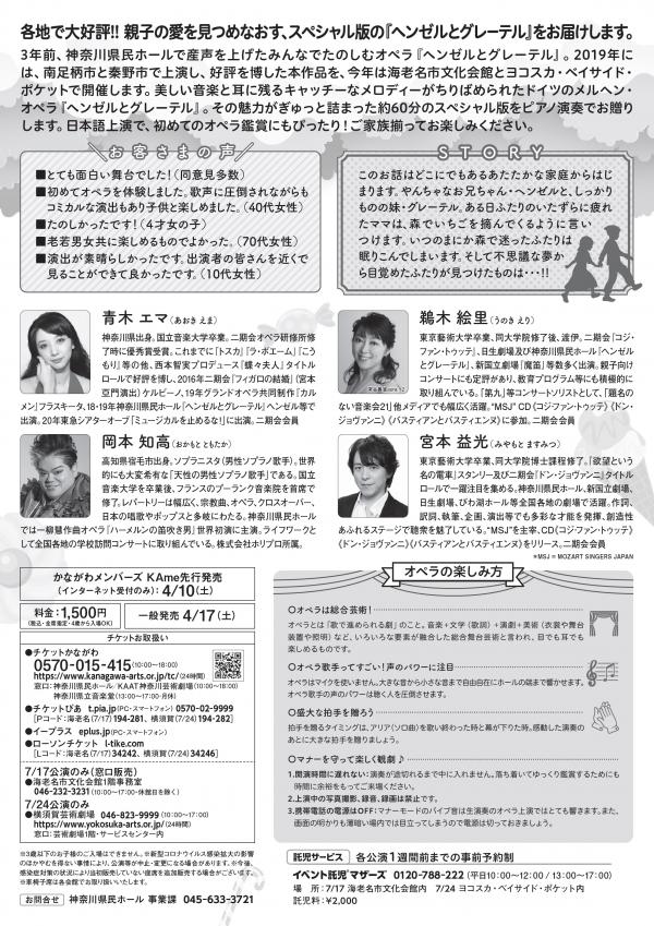みんなでたのしむオペラ『ヘンゼルとグレーテル』 2021年7月24日(土)14:00 ヨコスカ・ベイサイド・ポケット