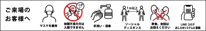 ・手洗い、消毒、ソーシャルディスタンスの確保、サーモグラフィ等による発熱検査へのご協力をお願いします。