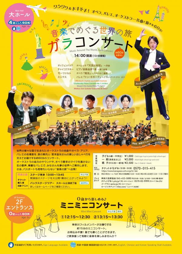 世界の様々な国で生まれたオーケストラの名曲やオペラ・アリア、バレエの名場面を旅の案内人・宮本益光さんの楽しいおしゃべりを交えてお届けする約60分のコンサート。オーケストラの迫力のサウンドや、オペラ歌手のマイクを通さない生の歌声、華麗なバレエで、みなさんを夢の世界へご案内します。さあ、パスポートも荷物もいらない“音楽の旅”へ出発!