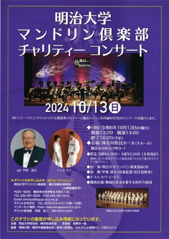 合わせ 明治大学マンドリン倶楽部 横浜演奏会事務局 045-261-0030 (大野屋書店内)