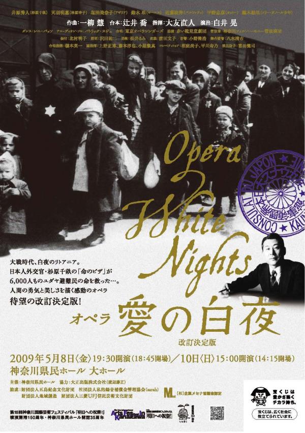 大戦時代、白夜のリトアニア。日本人外交官・杉原千畝の「命のビザ」が 6,000人ものユダヤ避難民の命を救った・・・。 人間の勇気と美しさを描く感動のオペラ 待望の改訂決定版! 作曲:一柳 慧 台本:辻井 喬 指揮:大友直人 演出:白井 晃 配役 杉原千畝:井原秀人 杉原幸子:天羽明惠 アギリア:塩田美奈子 ヨーニス:鈴木 准 バルファティ:近藤政伸 オットー:平野忠彦 ソリー・ガノール少年:鵜木絵里 ダンス:レニ・バッソ 合唱:東京オペラシンガーズ 助演:赤い靴児童劇団 アコーディオン・ソロ:パトリック・ヌジェ 管弦楽:神奈川フィルハーモニー管弦楽団 *やむを得ない事情により、出演者等が変更になることがございます。 ★関連企画 チケット購入者特典!! スペシャル・プレトーク 出演:大友直人(指揮者)/白井 晃(演出家) オペラ「愛の白夜」への想いを語ります。 *受付は終了しました