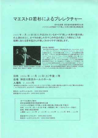 ※2005年2月20日(日)パイジエッロ:オペラ「美しい水車小屋の娘」(神奈川県立音楽堂)公演チケットを県民ホールおよび音楽堂チケットセンターにての購入者は1,800円